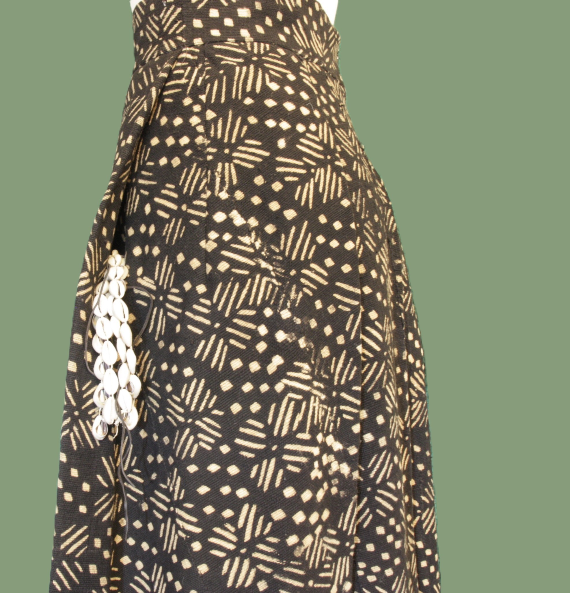 De stof is van 100% handgeweven katoen, samengesteld uit losse banden, een zeer onderscheidend kenmerk voor de ambachtelijke bogolan.